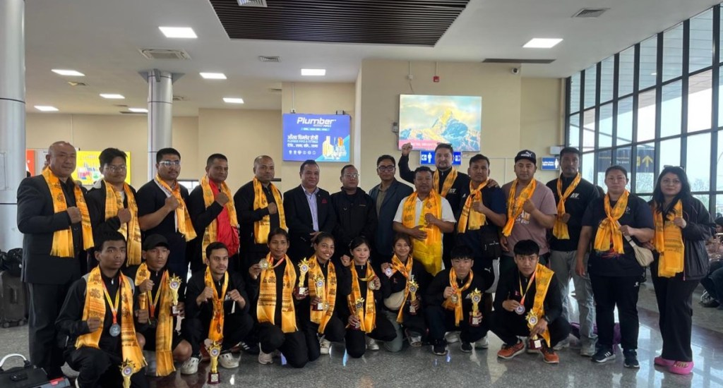 काठमाडौं । भुटानको राजधानी थिम्पु शहरमा सम्पन्न फोर नेसन्स कप बक्सिङ च्याम्पियनसिको पदक विजेता खेलाडीसहितको नेपाली टोली स्वदेश फएिको छ । उनीहरुको स्वागतको लागि नेपाल बक्सिङ महासंघका अध्यक्ष राम अवाले, महासचिव मानबहादुर भण्डारीसहितका पदाधिकारीले टोलीलाई त्रिभूवन अन्तर्राष्ट्रिय विमानस्थलमा स्वागत गरेका थिए ।