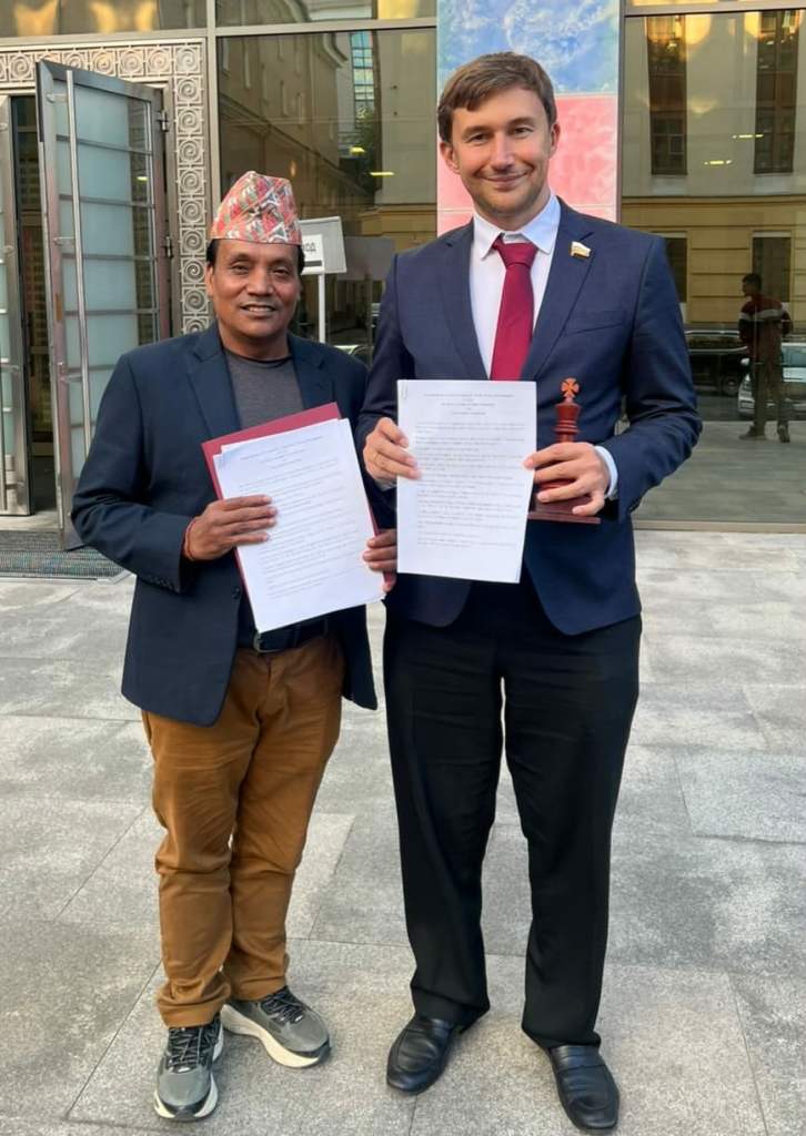 रुसको राजधानी मस्कोमा नेपाल बुद्धिचाल महासंघ र रसियाको मस्को क्षेत्रीय चेस महासंघ बीच समझदारी पत्र (MoU) मा हस्ताक्षर भएको छ।